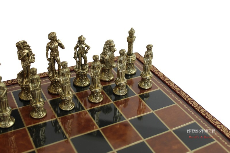 Scacchi in Metallo + Scacchiera in Legno stile ottone